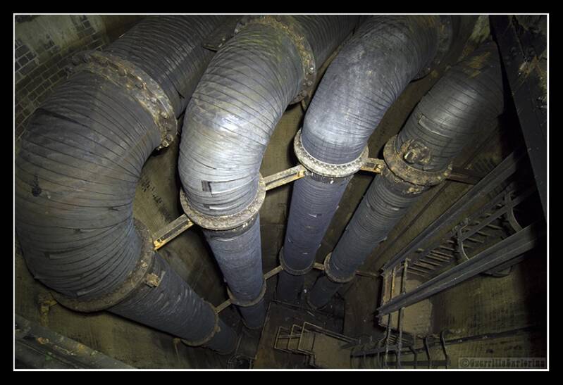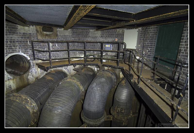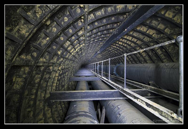 As with most things in London, and probably any big city. Access comes and goes for certain sites. A quick spread of word of mouth, and a few people get in while a place is accessible. Getting into these Water tunnels was a squeeze through a resistant door, that took awhile to get through along with a camera bag. Finally in, a gallery sat above the water pipes dropping down below us. An unknown pipe opens into the mix on the left.