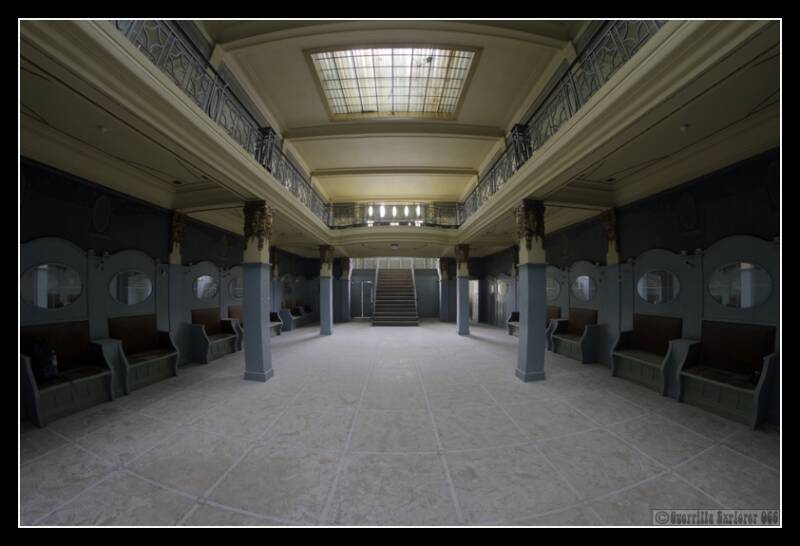 I very much like architecture, particularly the Art Nouveau and Art Deco style that followed. So when I saw pictures of the foyer in this place floating about, I was very much drawn in, like a darts player to large glass mugs of ale. The one small problem was, that explorers on the continent tend to be very sensible, and not label places under their real names. As such, you had to know someone who's been there, or well connected. I tried a few people, but everyone was tight lipped, so I set off to find it myself with a few searches on the internet, going on the clues a few people had put up about the place. It has served as a theatre and as a cinema in it's life, celebrating it's centenary this year (2013).