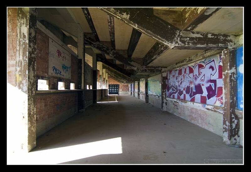 As with a number of abandoned places visited, a shooting range has been established here, under the grandstand