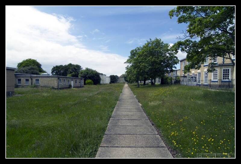 After getting out, we weren't too worried about being caught as we were tired and keen to leave. We walked Eastwards from the boiler house past some more workshops. We walked alongside buildings that reminded me of a 1950's holiday camp (I should point out that watching Hi-De-Hi is my only holiday camp experience!) The place was still neatly laid out, the grass still presentable.