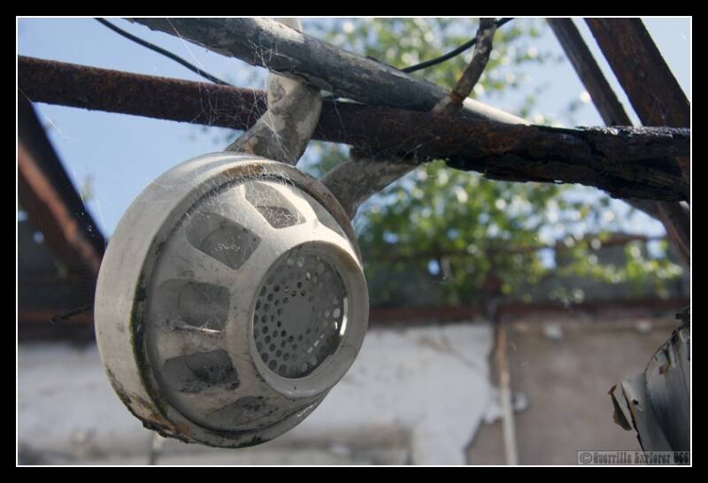 Around the corner were more clearly defined cubicles sans beds. The peeling paint hanging down like cheap Christmas decorations.