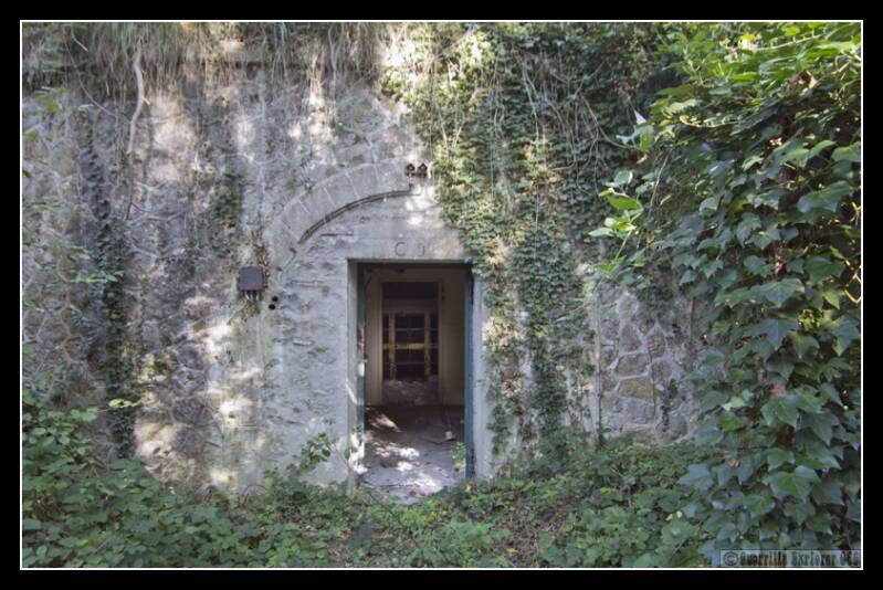 Having cheated death quite enough for one day, I went back to the main path inside the fort. There were lots of concrete blocks with tunnels disappearing through them at an angle, that would via a side door, come out the back of the block. This being a front door to one of the blocks.