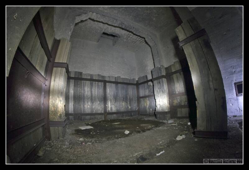 Our bellies full, we packed up and carried everything to the fort entrance, and left our the stuff in a room. Marc then took us off to see some bits in the Fort i'd clearly missed. He also divulged some history. He showed us a number of rooms with wooden padding, and thick plate glass screens. Here controlled explosions were carried out.