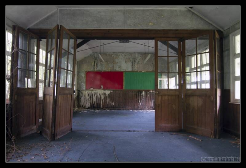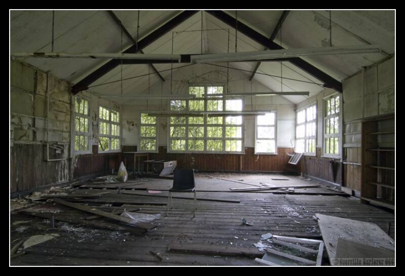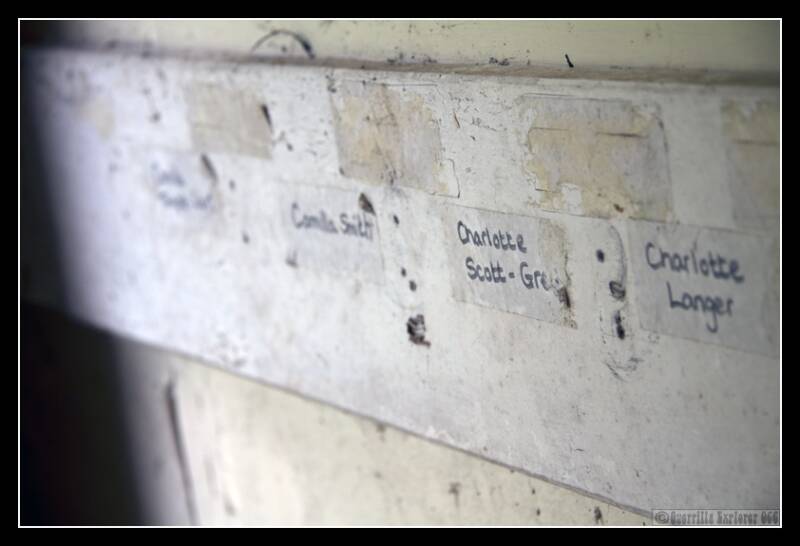 I came through the woods from a nearby church, and the first buildings were some nasty decrepit portacabin type structures. Some names were still present on the coat hooks, I'm guessing they weren't the daughters of a sink estate in Peckham.