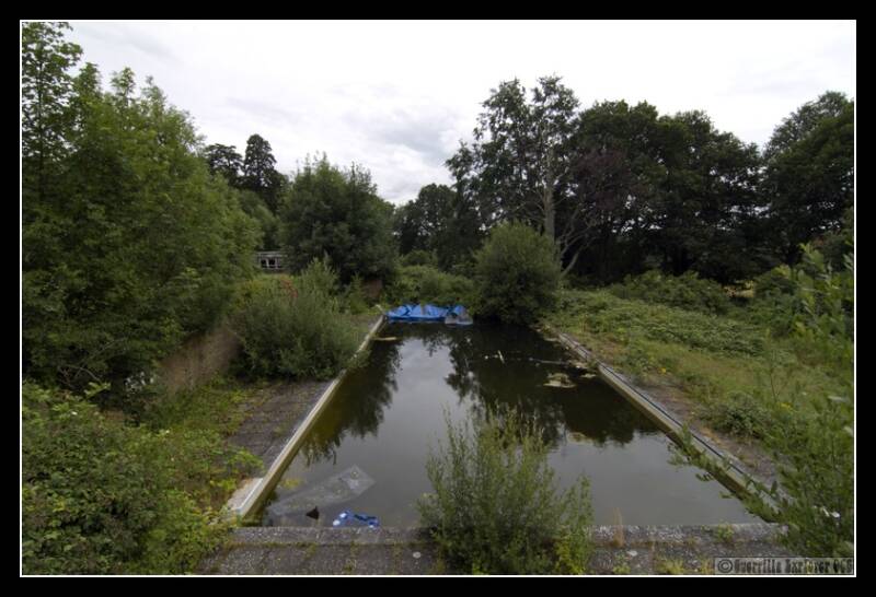 To the side of the main hall was the school swimming pool, thoughts of young St. Trinian's Girls innocently play fighting in the pool were brushed aside by the harsh reality of the viscous dirty goop that now filled the pool.