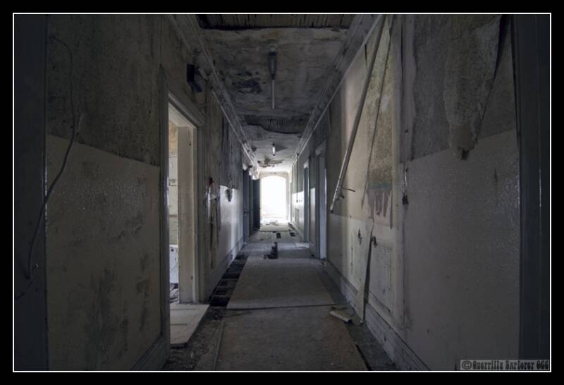 On the top floor here, there wasn't much of interest, most of the rooms were fairly scant. One room just having a trunk lying in it.