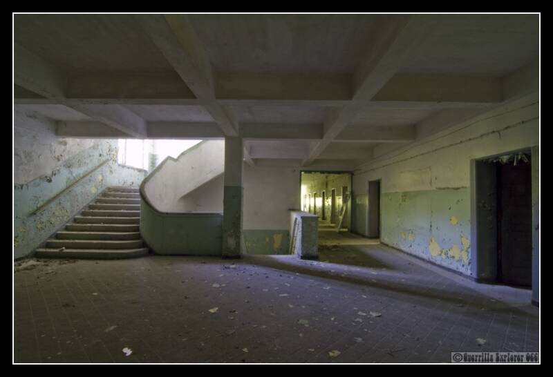 Stairwell area in barracks building shown above. I liked the simple exposed structure here. Having had military exposure when younger, I've always found military base buildings somewhat cold and soulless. Krampnitz is no different.