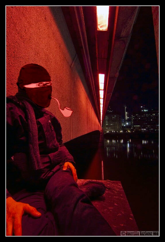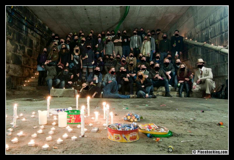 I didn't actually realise the connection between the dull concrete room and the bridge until I went along to an explorer party held in the room for some friends birthdays. Not that one needs an excuse to par-tay! I only had a point and shoot with me, so didn't get any interesting pictures. And to be honest, I was more interested in catching up with fellow explorers I hadn't seen in a while. I had turned up too late for the main pic, which shows the difference people can make to a place. (Photo used with permission from Placehacking.com). A while later we had another party here, for the launch of a friends short film.