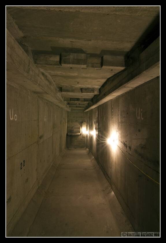 Some other explorers had put up pics of a large concrete room, and raved about it as a new find. Personally, I wasn't that impressed. Over the years I'd seen quite a few similar rooms, and after the thrill of getting access, they're very dull. What wasn't explained at the time, was that they provided access to the internal structure of the bridge. It was possible to walk from one side to the other side of the river, inside the bridge. How cool is that!? Well, I certainly thought it was cool.