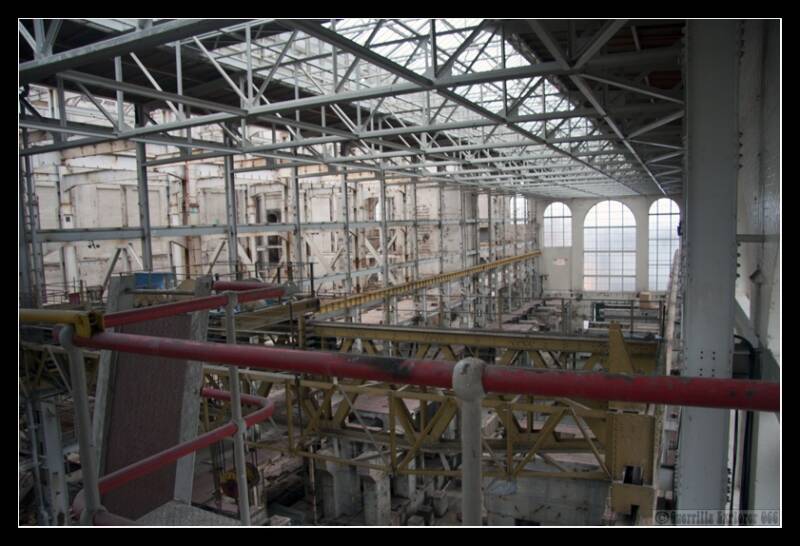 At the other end of which is the concrete blocks where the turbines would have sat. The seemingly endless steel beams stretching into the distance above.