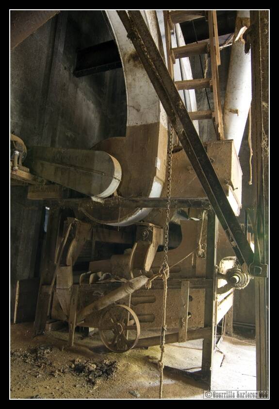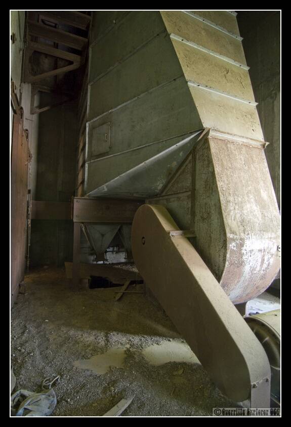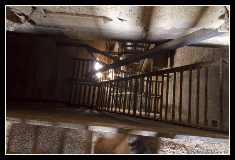 Stairs up to the top floor, a loading chute runs up to a hopper.