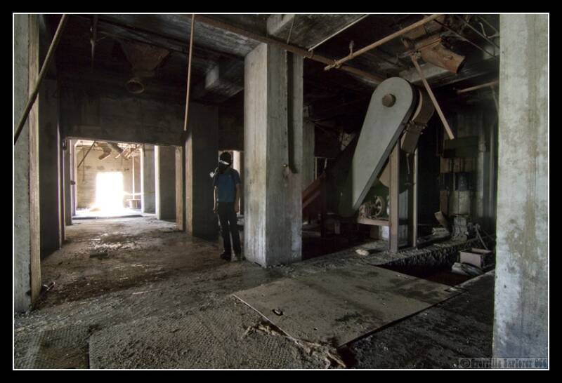 I returned the following morning to get some decent shots, while Fishbrain opted to do some live skyscraper infiltration. I brought my facemask along, as the air was heavy with grain dust. In the top floor of the building, on a floor smaller than the larger floors below, a set of semi-automatic scales for weighing the grain in large tranches. I also found an old bottle of Mountain Dew here.
