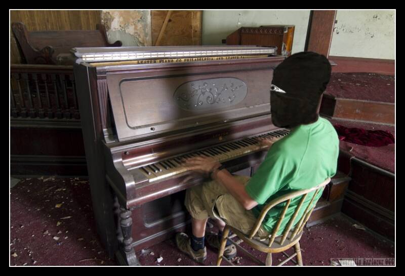 As can be seen on the far left, access wasn't difficult, however, I didn't find that out until I'd squeezed over the top of a door on the other side. D'oh! The church was largely intact with little sign of vandalism.