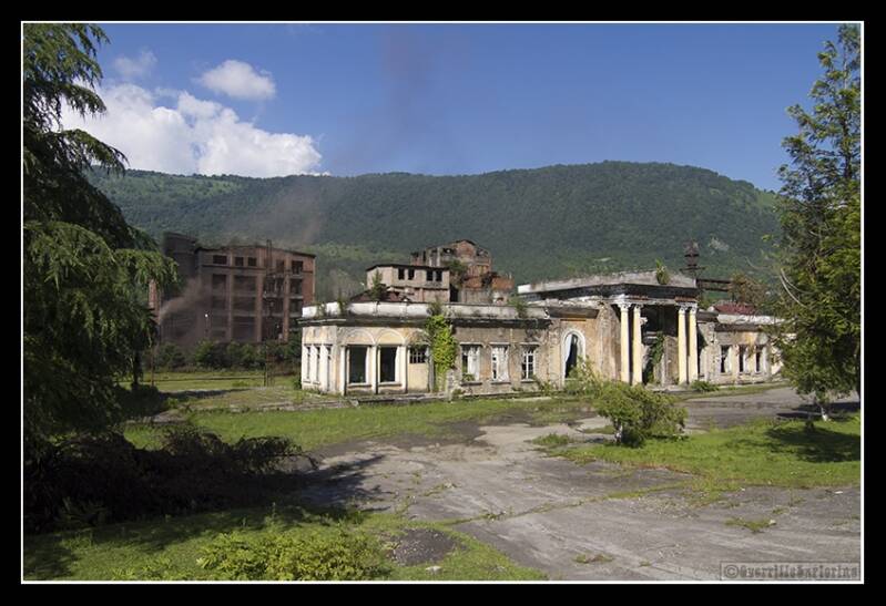 During the 'Siege of Tkvarcheli,' the Georgian forces started by bombing the town's power plant, aerial photos show it as the main focal point of the town. It was the main focal point for my trip to the town, as little beats a nicely decayed power plant or industrial factory. Sadly transport is tricky in Abkhazia, and I had to rely on my driver to get around. When i indicated I was going to jump a wall and get in, he drove around to the main entrance to ask the site guard. The site guard said the site had a cctv camera and it wouldn't be possible. I didn't care, but the driver was edgy about a foreigner with a large camera wanting to 'break' in. So sadly i missed out.