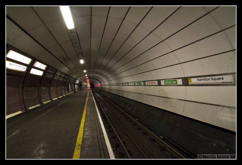 Turning around 180 degrees from the above shot, we looked down the tunnel into the distant gloom. The tunnel here continues underneath the Mersey. With time approaching 4am, we decided we wouldn't have enough time, so turned around to head back.