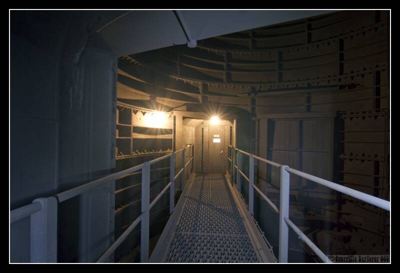 The back of the grey door mentioned in the above picture. Here is the vent that leads up to the funnel, a bridge leads across to the back side of the passageways. There was a lot of draft in here, and opening the grey door took a lot of strength, due to the pressure differences. When the station was still in use, this was a lift shaft, as was the one we descended from the surface.