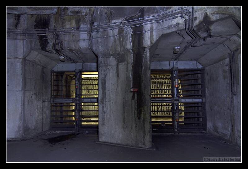 After a fast paced walk, we finally got to the intervention point. We knew we could exit here, but also knew it was going to be alarmed and flush with cameras. This shows the tunnel going East to the next station, just around the bend in the distance.