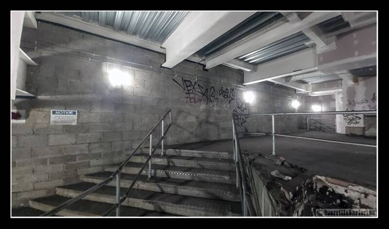 Xmas morning came, and I wearily got my things together and tip-toed out the house. With no public transport and not wanting to use the car, I cycled over to Kings Cross. The streets were predictably quiet, and I passed a few cyclists as well as lots of small groups of Asian tourists, I'm guessing Chinese or Japanese. I got to Kings Cross and locked my bike up, and changed into appropriate clothing. I went to 'the easy way in', that I had checked a fortnight before. Sadly this was no longer the easy way in! So I went for plan B, a little further away and requiring more effort. Even though my efforts were on camera, 3 at least, I'm not aware my actions were spotted by anyone. Onto the disused station platforms, I went up to the old station to rest for a moment. It had changed since I was last there, and the rebuilding of the Lighthouse building that sits West of the old station. Now a breeze block wall sat across the old passage and old hall that used to be there.