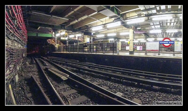 Next up was Edgware Road, where sadly the nice entrance shot is lying somewhere in Wembley on a SD Card, Grrrr! I walked left as I entered the station, and saw a recess area with some doors and a room with a football in it and nothing else. Then there was a buffer at the end of a track for stabling trains. I walked along the side of the tracks and could see engineering and stores through the glass windows beside me. I was worried I'd be seen, but no one was there.