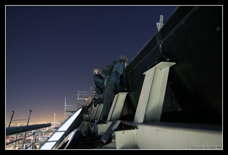 A search of the resources available provided a way into the building, and it was game on! Passing huge plastic vents pumping hot air into the building, we began the ascent. A thirsty Speed using any bizarre utensil he could in the flats to get water into the system.