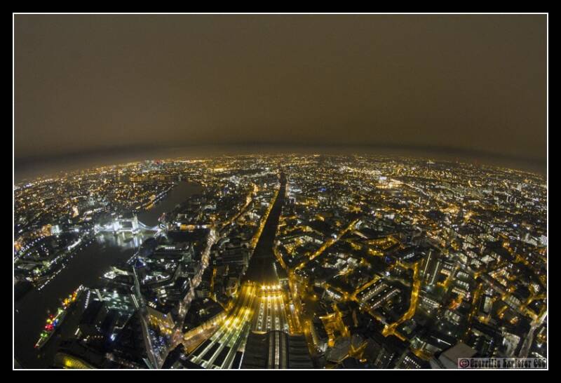 A fisheye of the north bank of the Thames, the Heron Tower (the whitest tower left of centre) another previous explore. The Gherkin and Tower42 almost lost in the sea of lights. HMS Belfast is moored up with it's colourful xmas lights on.