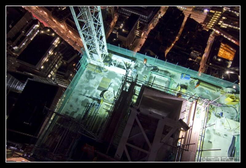 I was starting to get annoyed with this tower, having seen some rather nice photos coming from it, I was keen to get up there. The main thrust of early explorers' visits was to climb the crane. 160m of crane climb is not an easy task. In fact, Kev informed me that he'd actually had to take a breather on the way up. I turned up to tackle the crane on attempt 1 and found a group of workers there at 1am. attempt 2 I turned up with Alex Residues and Max Fishbrain, but it was raining, not ideal for climbing or photos. Attempt 3 saw me waiting around for an idiot explorer who had contacted me to do this, and then never showed up, so I decided to climb the actual core, but the stairs ended around the 23rd floor. And search as I might, I couldn't find another way up, without starting up the work lift. By the time attempt 4 came around, the crane had been removed, and local information showed the roof was now accessible from the core, along with the addition of not one, but two cranes on the roof. As seen here.