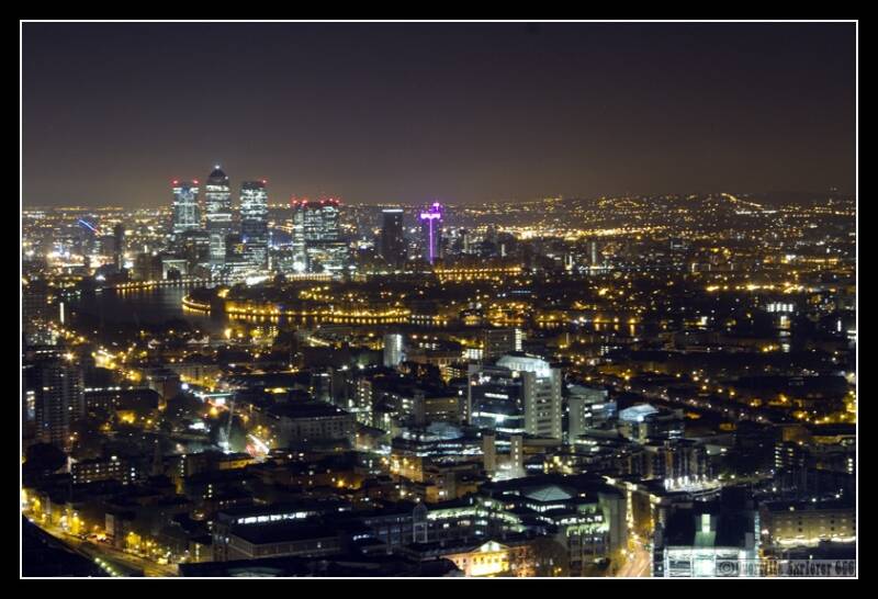 Further East is the Canary Wharf development, and the UK's former tallest building.