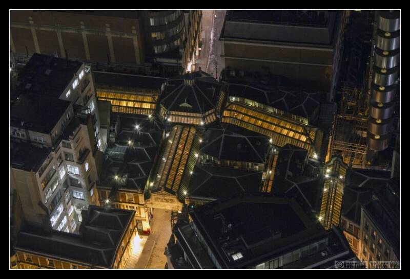 The rather wonderful Leadenhall market building spotted down below, edged with the Lloyds building.