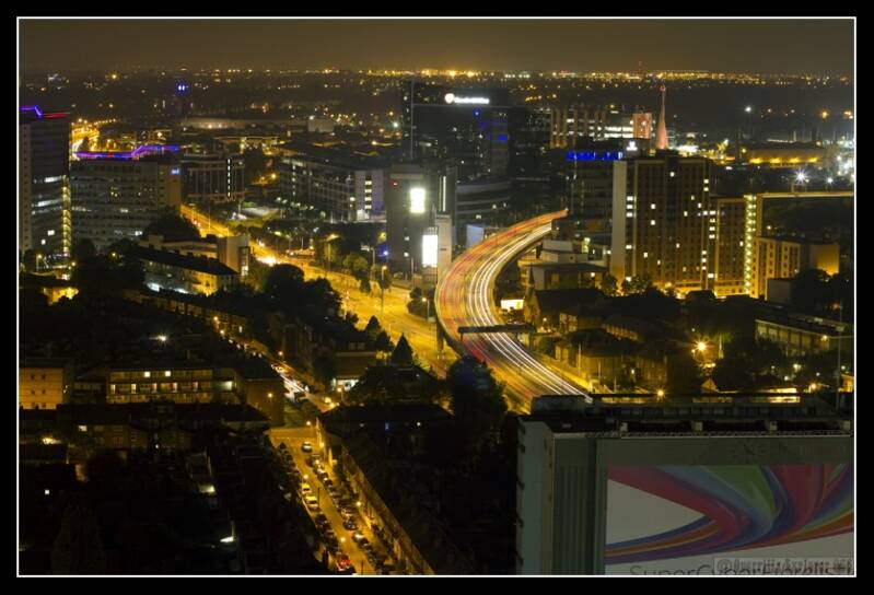 The great split, the M4 curves off North here, and the A4 emerges into the open from beneath it. The headquarters of GSK is just North of the split, in it's relatively recent built tower. The two blue lights level with the GSK sign, and on the left, are the top of the Gillette building, explored in the past. This was about 2am, and some chap in a red Ferrari could be seen, but mostly heard, roaring up and down the A4.