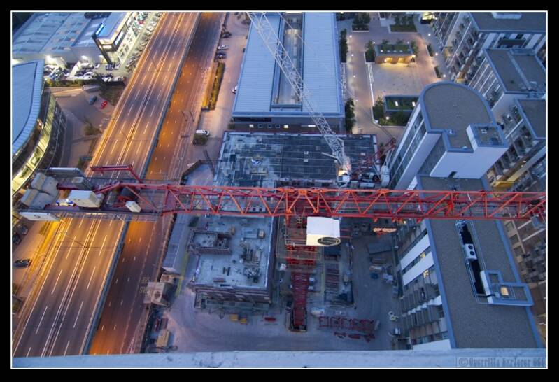 Every now and again I end up shooting off the A4 just before it becomes the M4 motorway, the main artery from London to the West of England. I had noticed a tall structure dominating the horizon that looked as if it was still being built. Curious, after work I went for a look and found it to be part of a larger building project west of Jct 2 on the M4. I scanned for access and problems, and it looked really easy. With no chatter on the exploring scene about it, I assumed it was pretty virginal. This would mean security weren't too hot on keeping a look out.