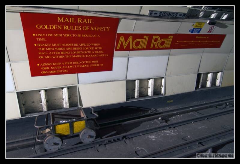 A Mail Rail train sits in the station at WCSO, this would be an interesting station, as it's where the ravers broke into. We approached it with caution.